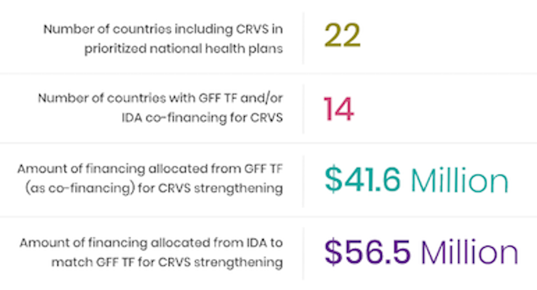 Plusieurs pays partenaires du GFF ont amélioré leurs systèmes d’ESEC en réformant leurs politiques afin d'étendre les points de services d'enregistrement, en passant à des systèmes électroniques, en formant les responsables de la santé et en sensibilisant les communautés à l'importance des systèmes d’ESEC.