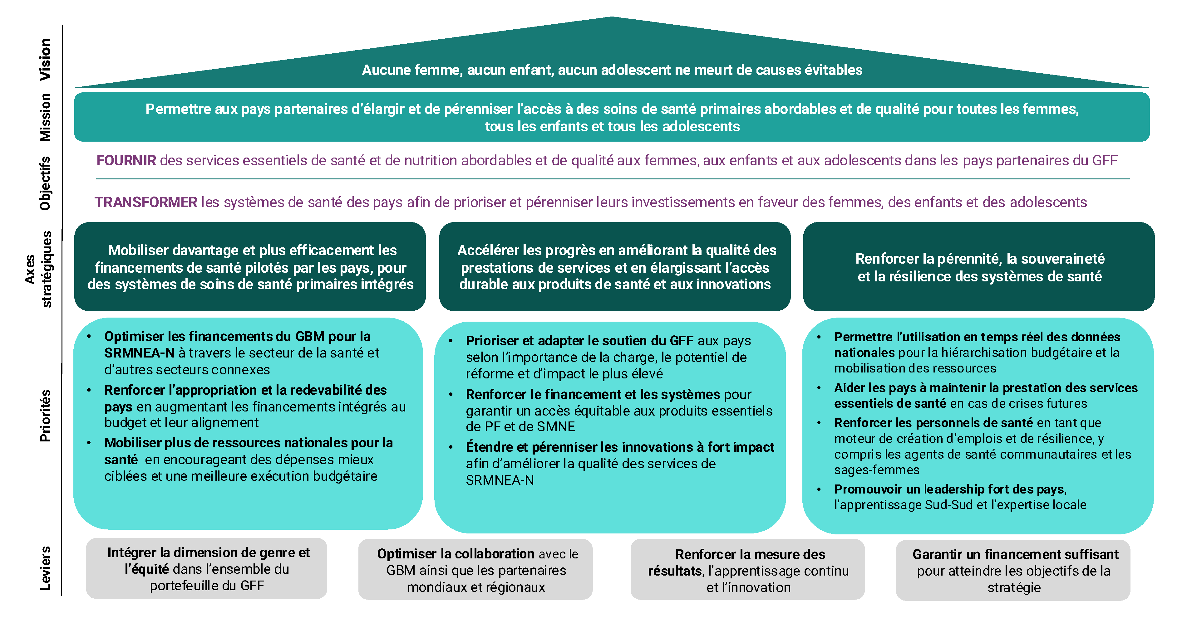 Avec sa nouvelle stratégie CAP SUR 2030, le GFF entend capitaliser sur ces avancées au cours des cinq prochaines années pour aider les pays partenaires à accélérer, étendre et pérenniser les progrès, tout en renforçant leur autonomie et leur résilience.